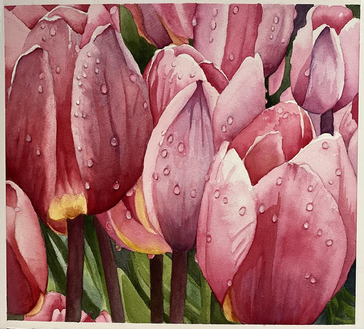 ![]() Tulips With Raindrops Watercolor (5" X 5") |